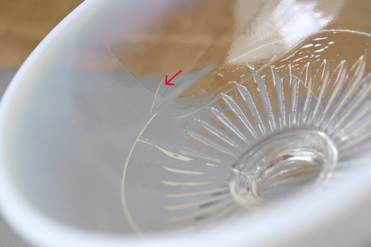 これは「プレスガラスらしい味わい」、「時代の特徴」として好まれることが多いです。