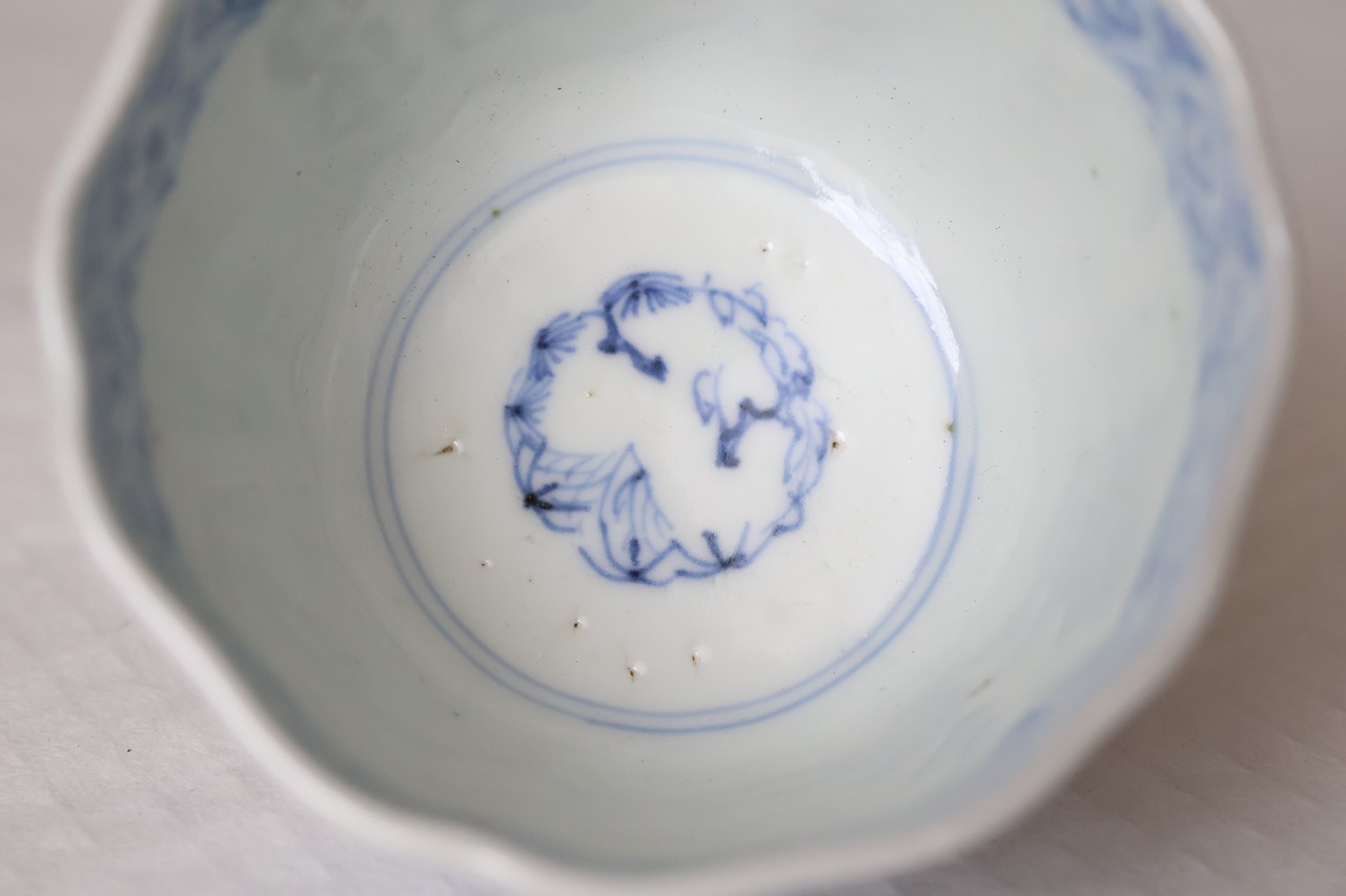 A:古伊万里 草花文様線描き 蕎麦猪口 江戸後期