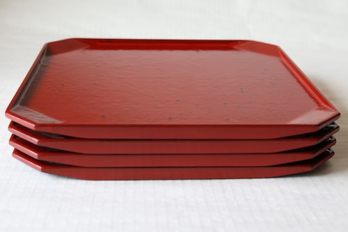 艶やかな赤漆で仕上げられた隅切角盆です。角を落とした上品な形が特徴です。