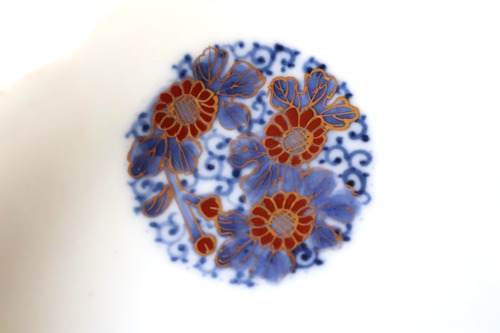 ■伊万里焼の6寸(中皿)です。丸の文様の中に、花や鳥などが描かれています。