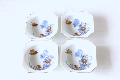 古伊万里 蝶・菊文 金採 八角小皿 江戸後期