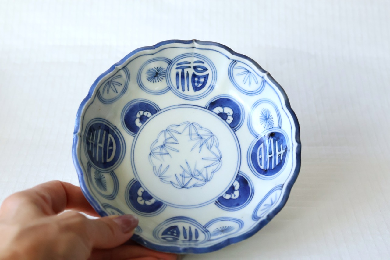 ■伊万里 福・寿丸文 染付 なます皿 明治以降