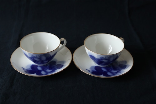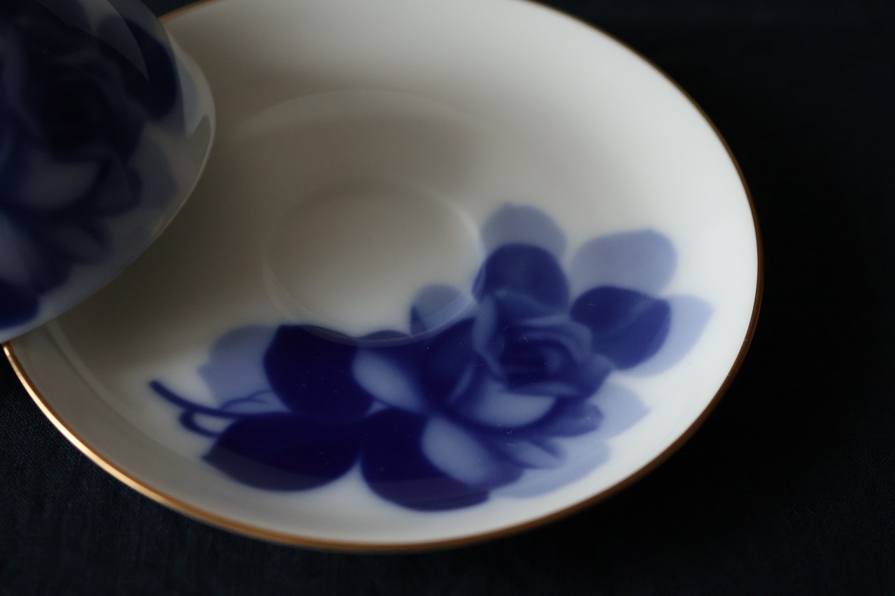 ■ 大倉製陶 ブルーローズ ティーカップ&ソーサー 2客セット (現代)