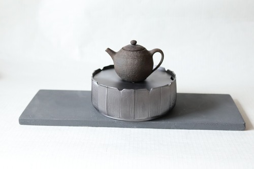 花・丸形壷承(錫製) 茶盤(中国茶・煎茶) 新品