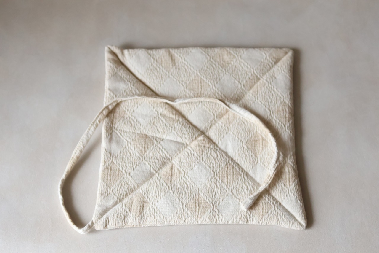 茶道具を包んで紐で巻いてまとめておく仕覆です。