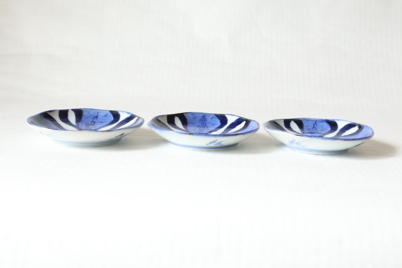 古伊万里 染付 四飛竜文 小皿 江戸中期 ③